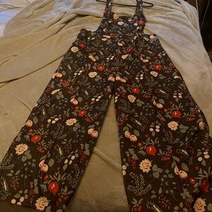 NWT CIDER Curve Lightweight corduroy Floral Print on green Women's jumpsuit