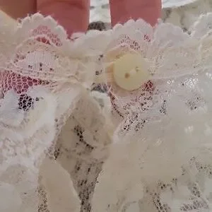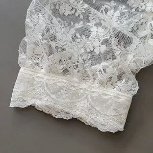 Sheer lace with single button back neckline closure.