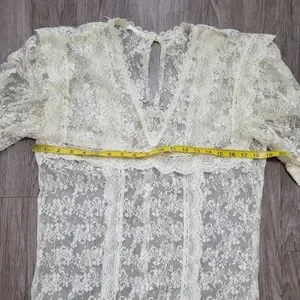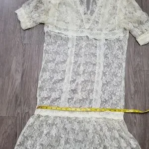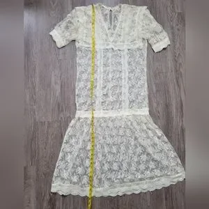 Vintage Lace Drop Waist Sheer Dress Nightgown Victorian Bridal Wedding Fairycore