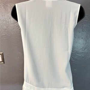 CAbi White Button Down Pleat Shirt Sleeveless Notched Collar