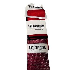 Stacy Adams Slim Tie and Hanky Red Geometric 2.75” Wide Handmade Microfiber New
