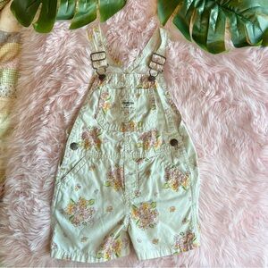 Oshkosh B’gosh Pink & Orange Floral Vestbak Shorts Overalls Sz 3T Cottage Core