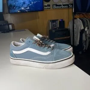 Vans Mens Old Skool Denim Blue Low Canvas Skate Shoes Sneakers Size 7 ladies