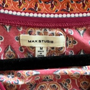 EUC excellent condition & quality! Minimal wear! Like new! Stylish wrap blouse with vibrant geometric patterns. Features a flattering V-neck and short sleeves. Perfect for casual outings. Max Studio London. Measurements in photos. Polyester & spandex blend. Women’s size medium. Smoke free home