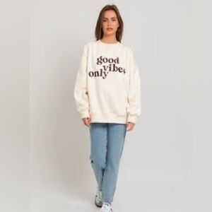 LE LIS White/Cream Embroidered “Good Vibes Only” Sweatshirt Medium