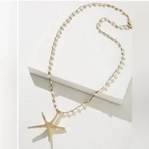 Elegant gold necklace with starfish pendant. Perfect for beach-inspired style.