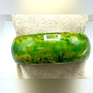 BAKELITE End of Day Marbled Bracelet & Earrings Green, Gold, Black Vintage Set