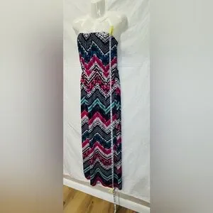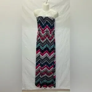 Stylish chevron maxi dress featuring vibrant multicolor patterns. It has a tube top with a lining underneath the top. With the right accessories, you will surely stand out all the time. Fabric is quite stretchable. Great summer dress and perfect for any occasion.