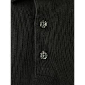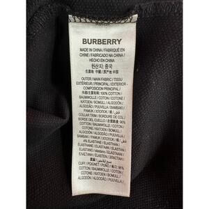 Burberry Stonely Logo Tape Cotton Pique Polo Shirt in black size SP, BURBERRY ENGLAND engraved on all buttons, comfortable and classy, one tiny flaw is shown in photos, difficult to see unless you look way up close, logo tape on shoulders and sleeves, 100% cotton with trim of 96% cotton and 4% elastane, super nice condition, smoke/pet free.