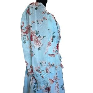 Exlura NWT Woman’s Large Tiered Square Neck Smocked Ruffled Blue Floral Sundress