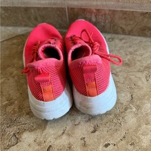 Vibrant pink athletic sneakers with a comfortable white sole. Perfect for casual wear or workouts.