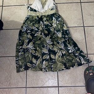 Embrace the resort vibe with this sleeveless sundress featuring a vibrant green and white botanical print. The V-neck design and flutter sleeves add a touch of elegance, while the high-low hemline offers a modern twist. Perfect for casual outings, this dress combines style and comfort effortlessly.