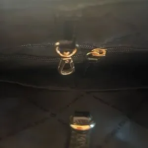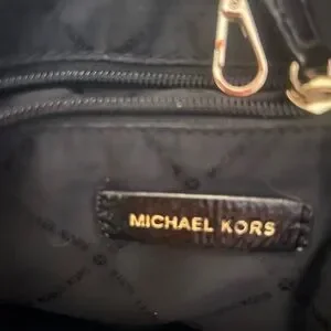 This Michael Kors tote bag in black features a luxurious textured leather finish with a subtle sheen, offering a sophisticated look. Its structured design and double handles provide both style and functionality, while the gold-tone hardware and signature MK charm add a touch of elegance. Perfect for carrying your essentials, this spacious tote is a timeless addition to any wardrobe.