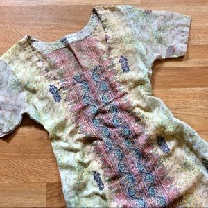✨ One of a kind! ✨ This handmade Madhu’s Boutique dress is so gorgeous! Made from a vintage kurti ♡ Short sleeve, square neckline & elastic scrunch in the back to make it lightly fitted - so flattering! :) Be sure to check out detail photos of the fabric & embroidered accents ♡ I'm so sad to be parting with it, but it's just not the best color on me. I hope it finds a wonderful home! Excellent condition. No size tags, but comparable to a small. Happy to provide measurements!
