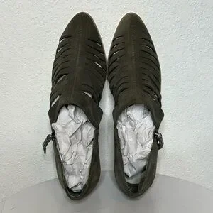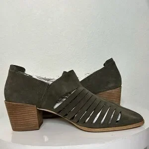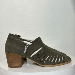 1. STATE ARNET OLIVE SUEDE LASER CUT POINTED TOE HEELED ANKLE BOOTIE