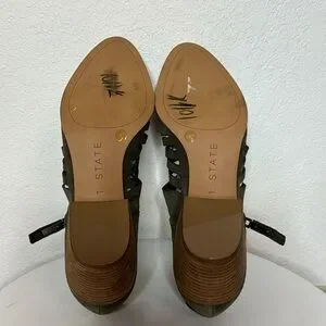 1.STATE Womens ARNET Booties have a leather strappy vamp with synthetic lining and sole. Pointed toe. Side zip closure. Slit cutouts. Stacked heel.