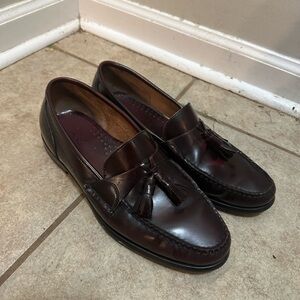 Experience timeless elegance with these Bass brown leather loafers, featuring a classic slip-on design and moccasin-style toe construction. Crafted for both comfort and style, these shoes are perfect for formal occasions, offering a polished finish and a sophisticated look.