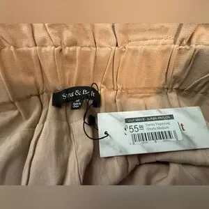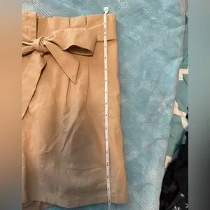 Stylish and comfortable tan shorts featuring a chic bow detail. Perfect for casual outings or a day at the beach. Brand new and never worn but the clasp is coming off but just needs to be sewn back on.