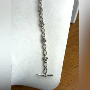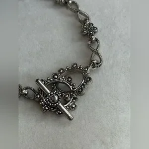Vintage-Inspired Silver Floral Bracelet w/ Marcasite Accents & Toggle Clasp