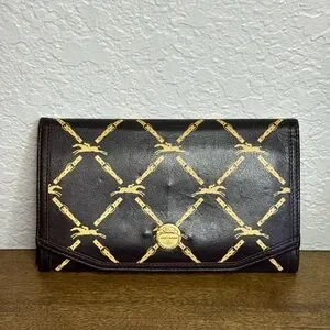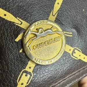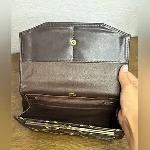 Vintage Longchamp Brown Logo Print Leather Clutch Bag Wallet