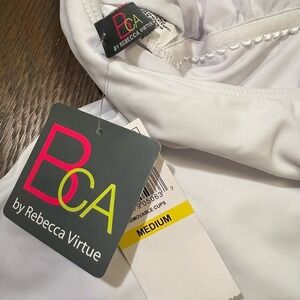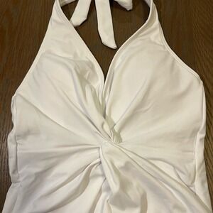 Becca by Rebecca Virtue White Twist Front Halter One Piece Swimsuit Medium NWT