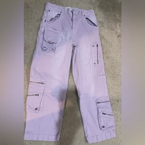 Chic light purple cargo pants with practical pockets. Ideal for everyday style.