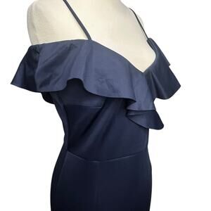 VENUS Midi Dress M Navy Blue Cold Shoulder Ruffled Mermaid Fit Flare Cocktail