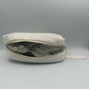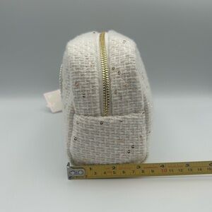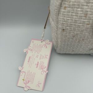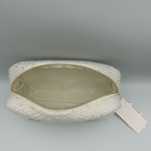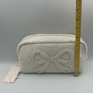 *New* Bow Fancy Off-White Knit Beaded Bow Makeup/Travel Bag