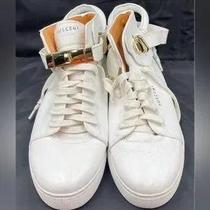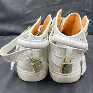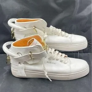 BUSCEMI Unisex 100MM ALTA White Leather 24kt Hrdw Hi-Top Sneakers Shoes Size 41