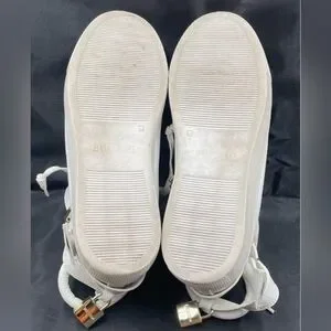 <>MSRP: $995<> BUSCEMI Unisex 100MM ALTA White Leather and 24 kt Gold Hardware Sneakers. Size 41