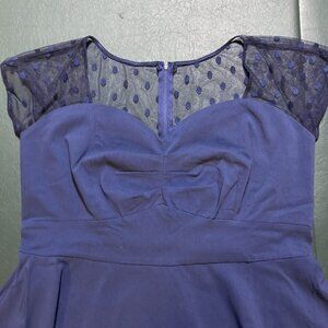 Torrid NWT Navy Blue Mesh Dot Inset Swing Dress Size 18 Sweetheart Retro Pin Up