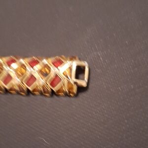 This exquisite bracelet by Joan Rivers showcases a beautiful blend of gold and red hues, featuring an intricate woven pattern that highlights its exceptional craftsmanship. The bracelet's flexible design and polished finish make it a standout piece, perfect for adding a touch of sophistication to any ensemble.