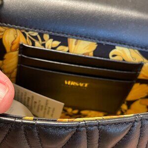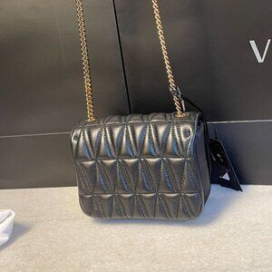 Versace Trapuntata Quilted Black Leather Shoulder Bag On Chain, DBFH821