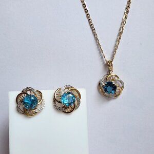 1980's 14K White & Yellow Gold Natural Blue Topaz Pendant - *Added photos of the matching earrings, but this particular listing is just for the Pendant. Earrings are also listed.*
