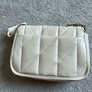 This elegant cream quilted shoulder bag is perfect for any occasion. Its sophisticated design and neutral color make it a versatile addition to your wardrobe. Comes with dust bag. Carried a few times. Some minor wear. Price firm