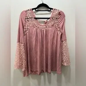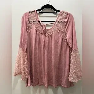 POL Pink Flutter Sleeve Blouse with Ruffled Embellishments. Size Small
