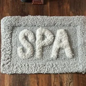 Luxurious bath mat with 'SPA' lettering. Soft texture for ultimate comfort. Enhances bathroom decor.