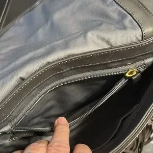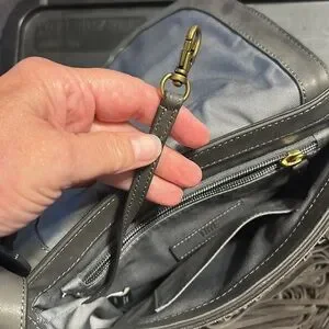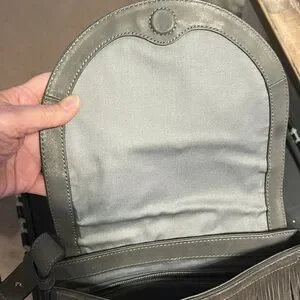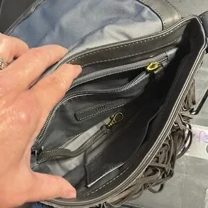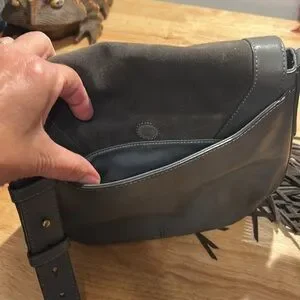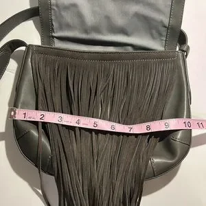 Frye leather Fringe Crossbody Bag. Gray, preowned, good condition.