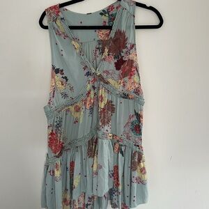 Free People Floral Tank Top - Light Blue and Pink