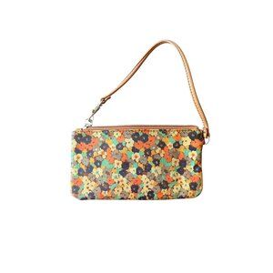 Fossil Key-Per Floral Canvas Leather Micro Wristlet Clutch Zipper Closure Strap