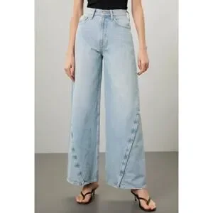 Effortlessly cool and made from premium 100% cotton rigid denim, the High-Rise Wide Leg with cool zipper detail to give an optional split cuff has a slouchy baggy fit, featuring 5 pocket detail, button fly and a wider leg with a fitted waist.