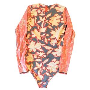 The Maaji Long Sleeve Surf Suit is a stylish and functional one-piece swimsuit designed for women. Featuring a vibrant floral pattern and a zip front for easy wear, this reversible suit in size medium is perfect for surfing or any water activities. The long sleeves offer extra coverage and protection, making it ideal for those looking for a comfortable and versatile swimwear option. With its colorful design and surf-inspired theme, this Maaji suit is sure to make a statement both in and out of the water.