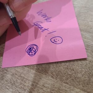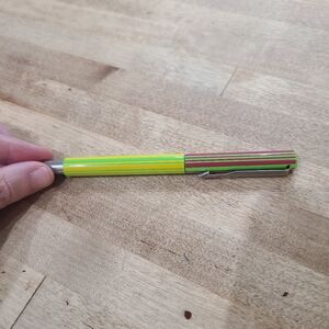 Vibrant striped pen with yellow and pink and green colors. Perfect for writing and drawing.