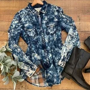 RYAN MICHAEL ⭐️NWT Button Down/Tunic in Acid Washed Blue