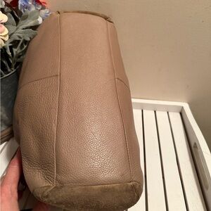 Coach Taupe Leather Suede, Phoebe Madison Shoulder Bag With Three Compartments