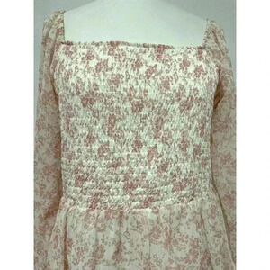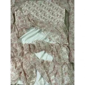 Madden NYC Floral Ruffled Dress Size XL Tiered Square Neck Sheer Long Sleeve
