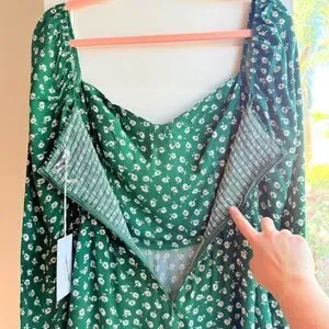 Reformation Mochi Long Sleeve Mini Dress Chive Green & White Floral size 6 NWT