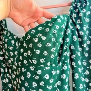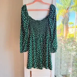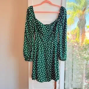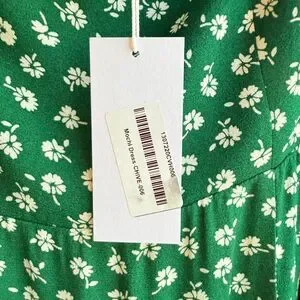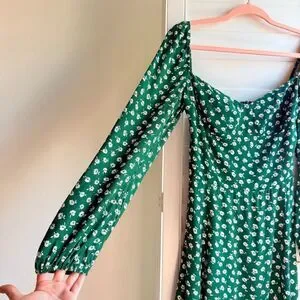Reformation Mochi Long Sleeve Mini Dress in Chive Green & White Floral size 6 Small, New with tags