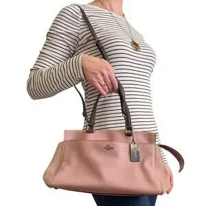 Coach Fulton Colorblock Dusty Rose Leather Suede Satchel Handbag #25006