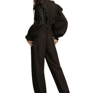 NWT Farm Rio Black Laces & Ruffle V-Neck Linen-Blend Jumpsuit (XS)